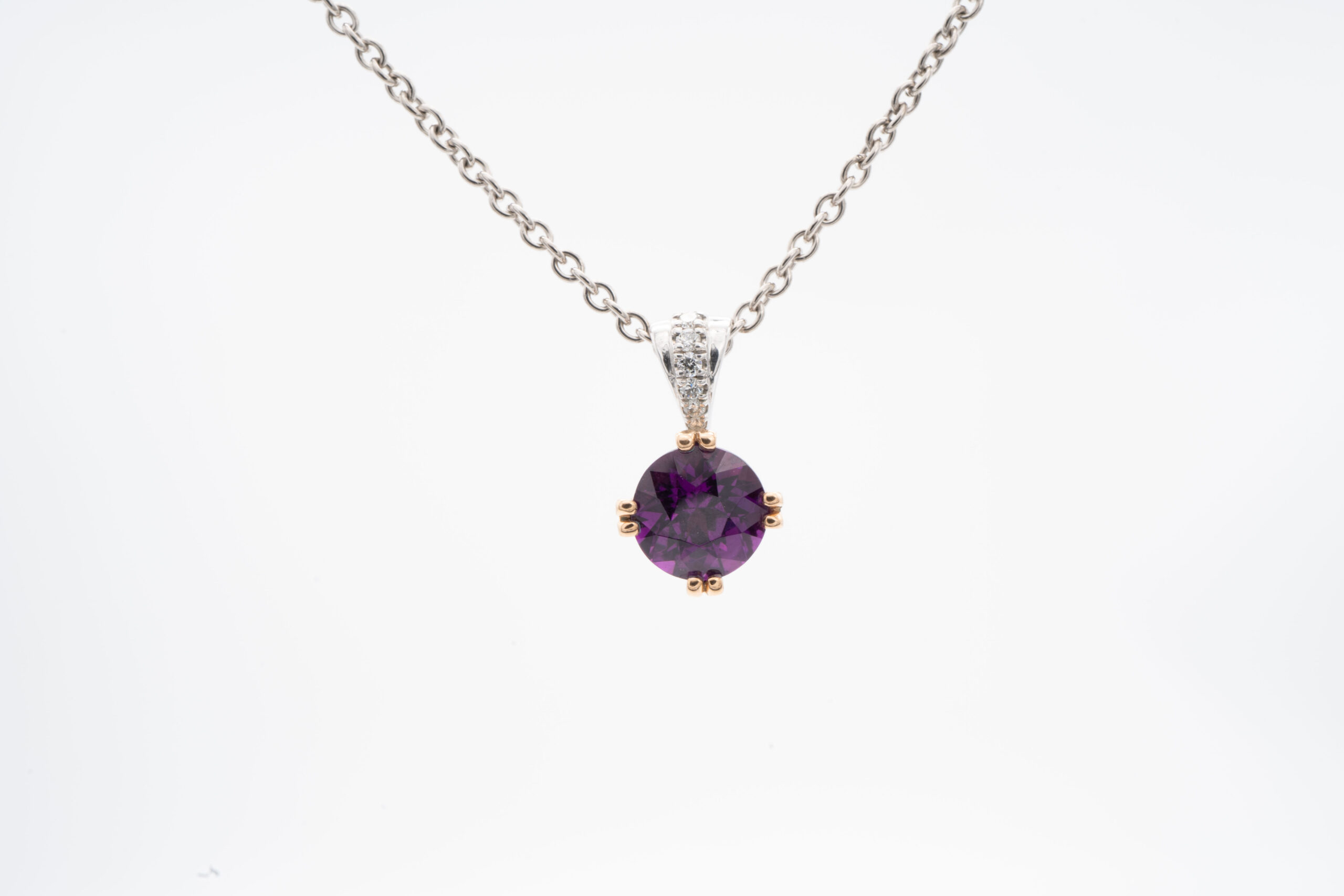 Atelier Heldwein “1902” Pendant with Royal Purple Garnet and Necklace in White Gold 1.8g 750/000 White Gold/Rose Gold Diamond 0.10ct. Royal Purple Garnet 2.14ct. Length 42cm