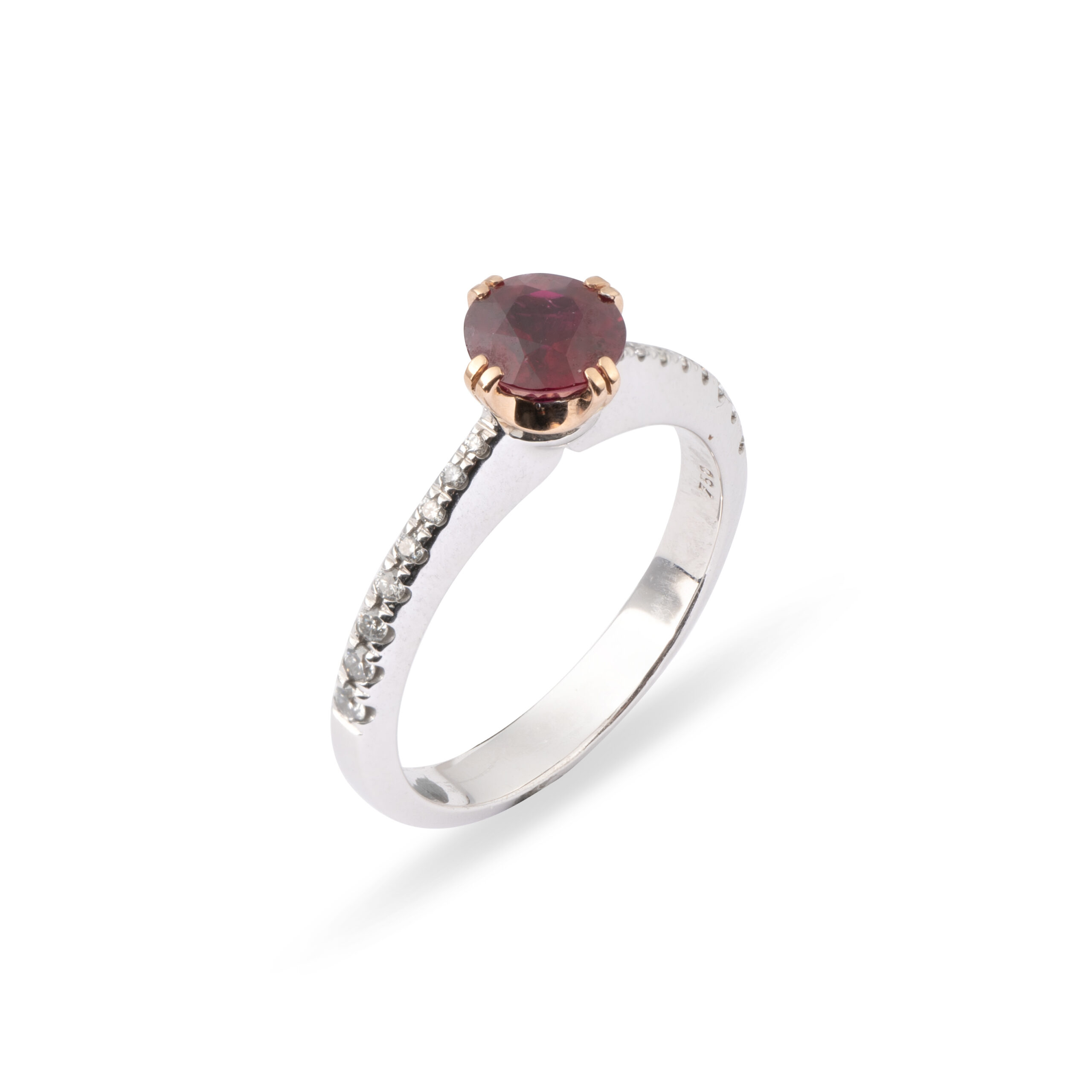 Atelier Heldwein “1902” ring with ruby and diamonds 4.3g 750/000 white gold/rose gold diamonds brilliant total 0.14ct. 1x Ruby 1.01ct. Ring size 55