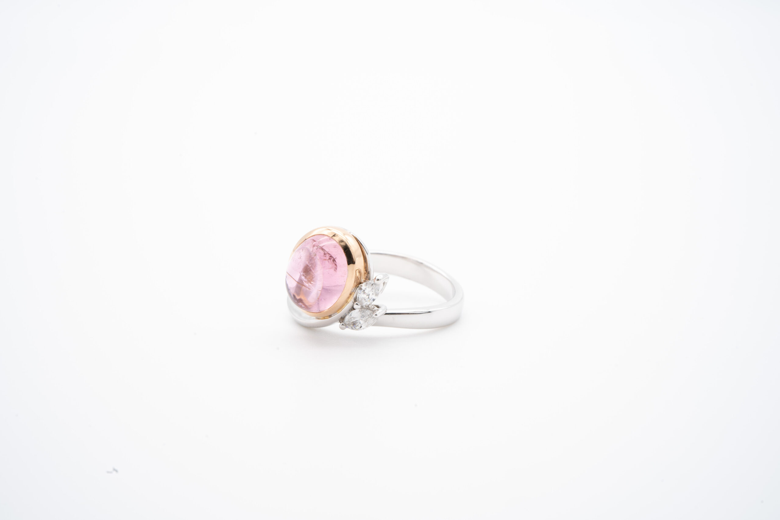 Atelier Heldwein “La Fleur” Ring Ref. No.: Ö-559 5.00g 750/000 White gold/rose gold Diamond Marquise 0.15ct. Tourmaline Pink Cabochon 2.34ct. Ring size 55