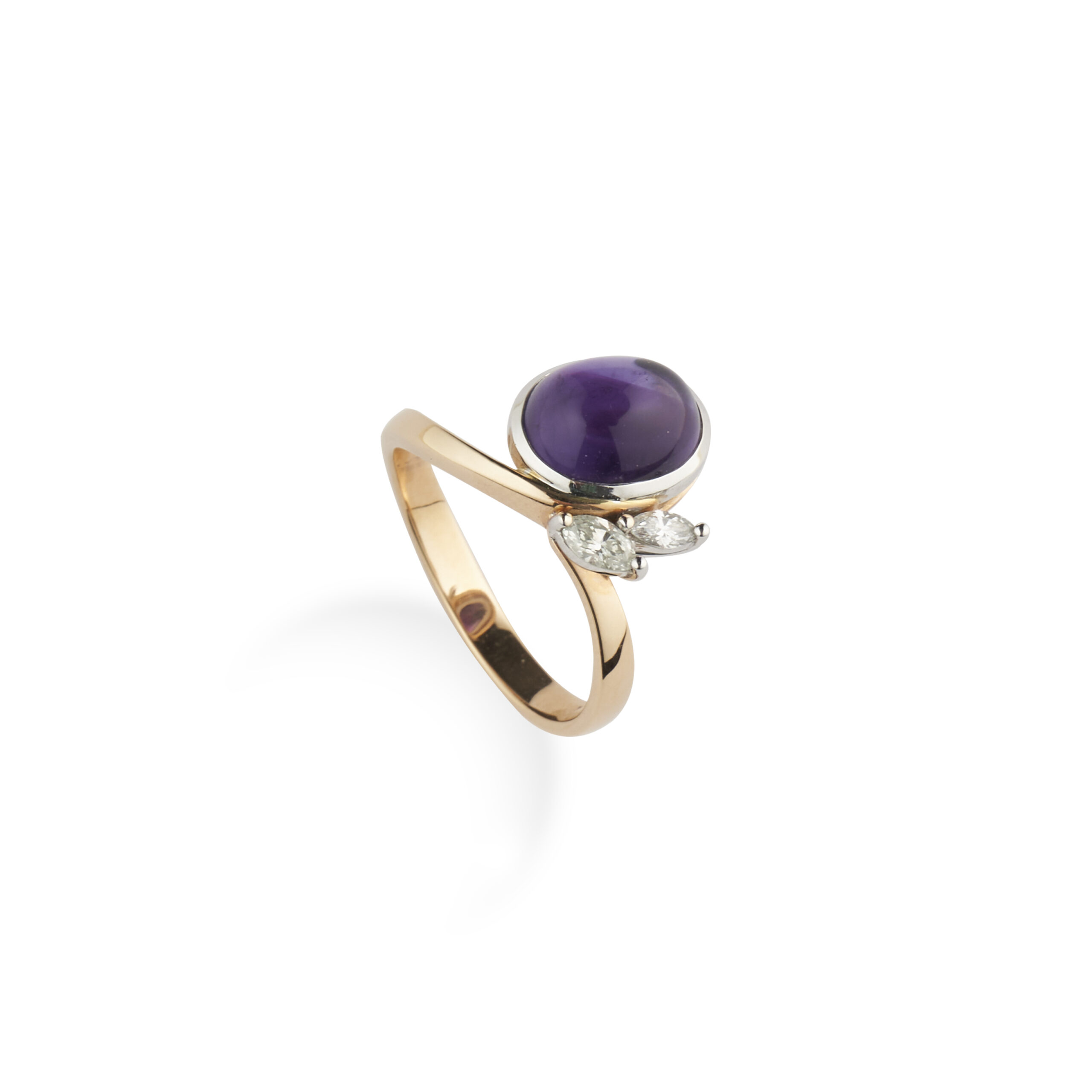 Atelier Heldwein “La Fleur” Ring with Amethyst 4.20g 750/000 Rose Gold/White Gold Amethyst Cabochon 2.86ct. Diamond G/F VVS Marquise 0.07ct. Diamond G/F VVS Marquise 0.13ct. Ring size 55