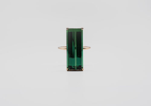 “Hero” ring with green tourmaline in yellow gold