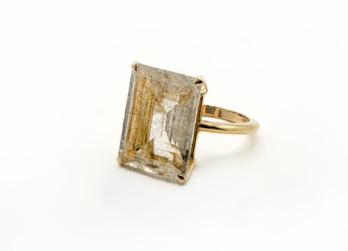 “Hero” ring with private stone (rutilated quartz) in yellow gold