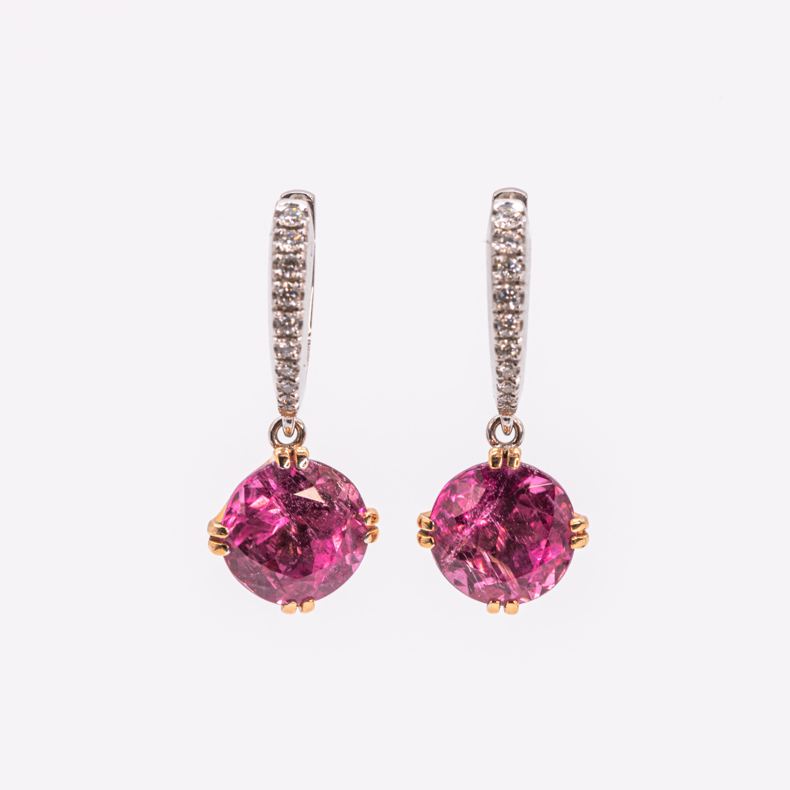 Atelier Heldwein „1902“ Ohrgehänge mit Rubellit und Diamanten 18 Karat/- Weißgold/Roségold 5,00g 2 Rubellit Pink Brillant 6.42ct. 14 Diamant F VVS Brillant 0.17ct.